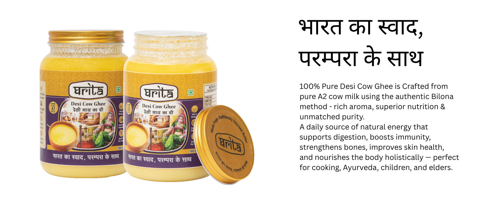 Frothella Farms introduces Ghrita Desi Cow Ghee, a premium expression of purity rooted in India’s ancient dairy tradition. Made using the traditional Bilona method from A2 milk of indigenous desi cows, Ghrita preserves natural aroma, nutrition, and authenticity. Rich in essential vitamins and healthy fats, it supports digestion, immunity, and overall wellness. Ethically sourced and carefully crafted, every jar reflects sustainable farming and conscious nourishment. More than a cooking ingredient, Ghrita represents a return to mindful living — bringing farm-fresh goodness, heritage practices, and modern health together in every spoonful.