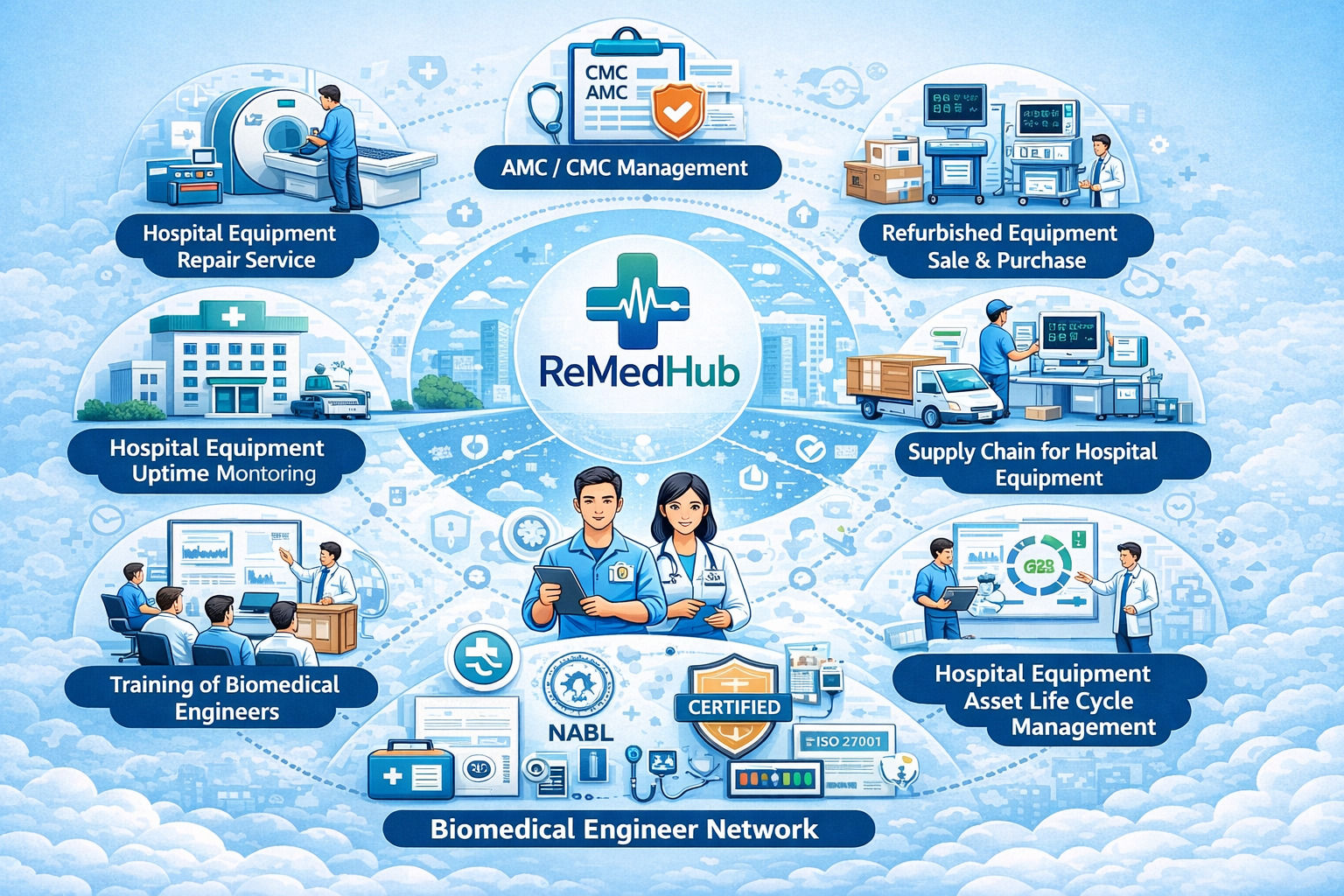 ReMedHub is building India’s uptime infrastructure for healthcare equipment. We connect hospitals, engineers, and supply chains into a hyperlocal platform—so machines don’t just get repaired, they stay running. This transforms a fragmented service market into a scalable, multi-billion dollar platform opportunity.” Today, service is fragmented, spare parts are delayed, and downtime directly impacts patient care. We connect hospitals, engineers, spare parts, and refurbishment into one unified platform—turning breakdowns into predictable uptime. We’re building the Health TECH Infrastructure EcoSystem for healthcare equipment—unlocking speed, efficiency, and opportunity in India.”**